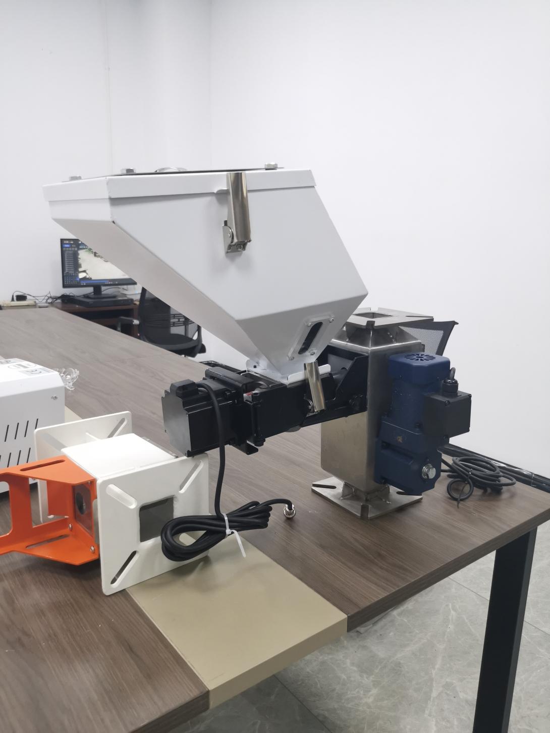 The metrological color masterbatch machine model uses a DC brushless motor, which mixes according to a pre-set ratio and automatically converts to speed through a microcomputer control system to directly drive the precision screw to extrude raw materials, with an error value of no more than ± 1%