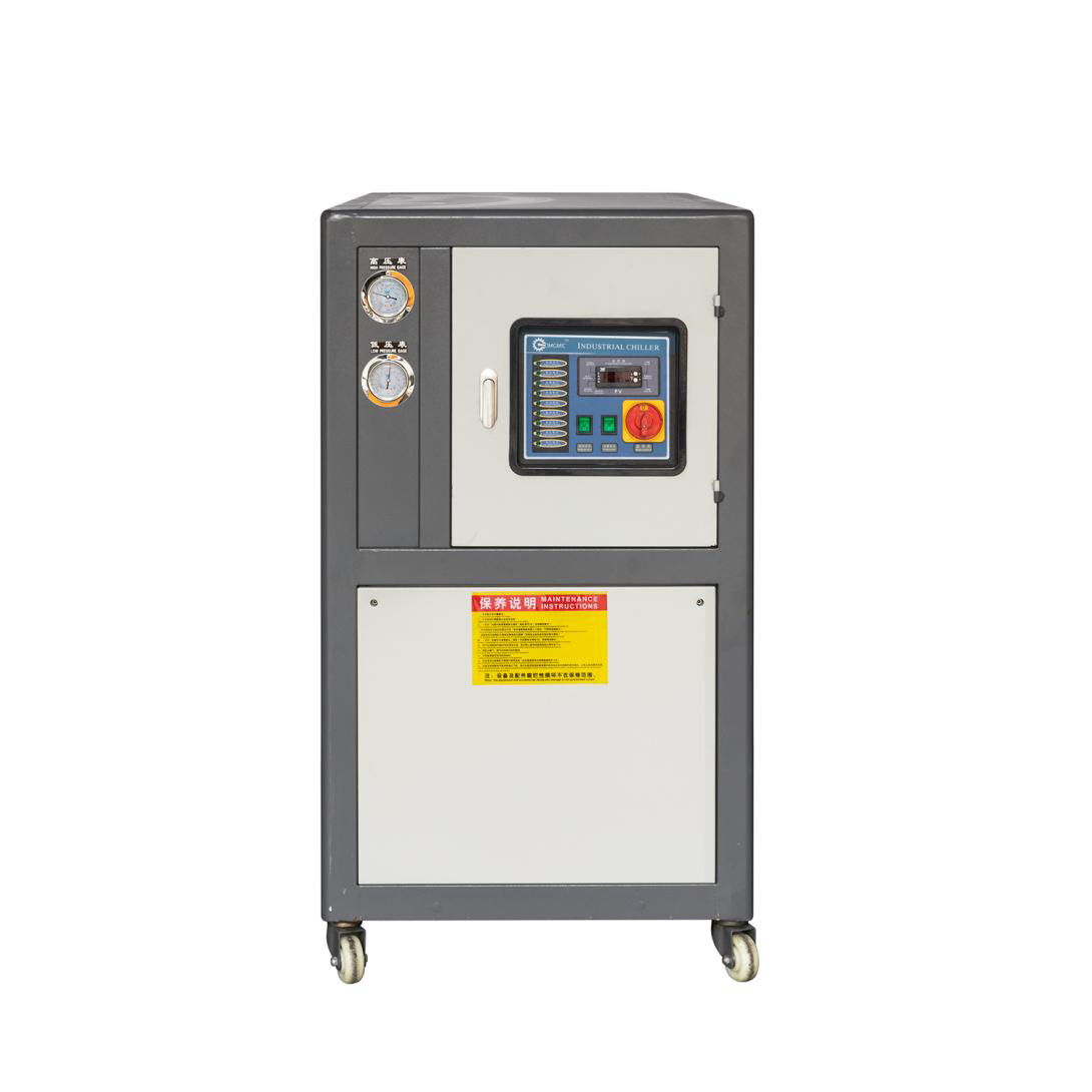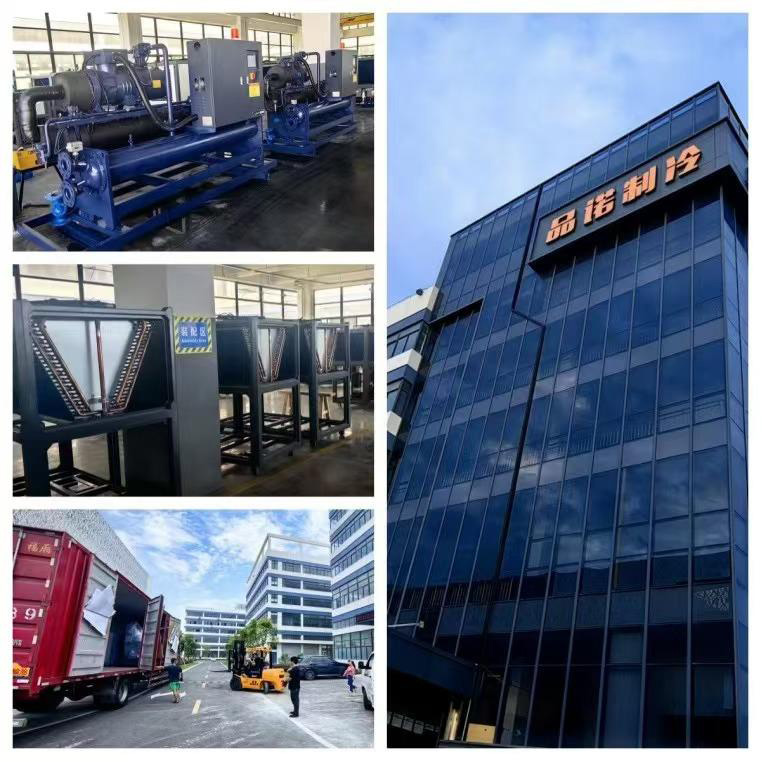The refrigeration system of a chiller unit consists of four basic parts: compressor, condenser, throttle, and evaporator. Connect the four major components in a certain order using copper pipes to form a closed system, which is filled with a certain amount of refrigerant.
