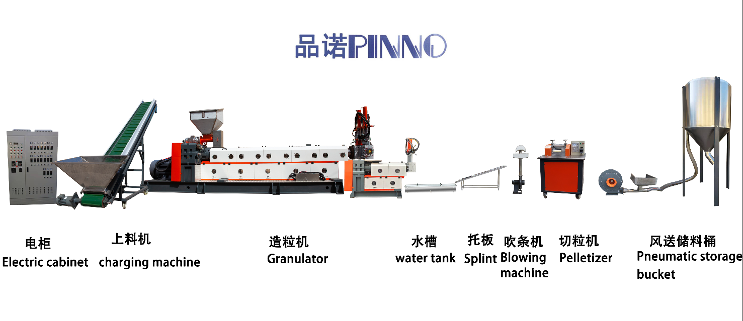 The plastic granulator is equipped with a comprehensive heating and cooling system, which can heat or cool plastic raw materials according to production needs. This not only ensures the stability and uniformity of plastic raw materials during processing, but also improves the quality and performance of products. The equipment is equipped with a dual station hydraulic screen changer and a mobile hydraulic station. Different auxiliary machines are configured according to different materials